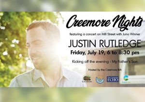 Friday – Creemore Nights, Mill Street. A free, outdoor street concert featuring Juno Award Winner Justin Rutledge. Info: www.experiencecreemore.com or