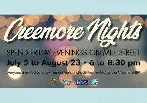 Friday – Creemore Nights - Mill Street Picnic. Community members and visitors are invited to pack a dinner or pick