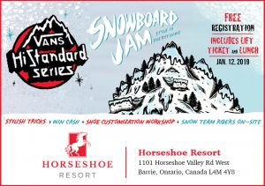 Saturday – Vans Hi-Standard Series, Horseshoe Resort. The international contest series invites snowboarders from all around the world to exhibit