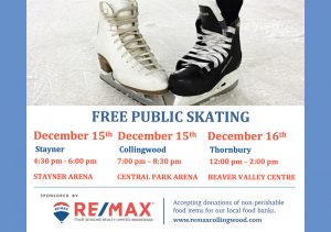 Saturday – Re/max Free Skate, Stayner Arena and Community Centre. Re/max Four Seasons Realty is sponsoring free public skating for